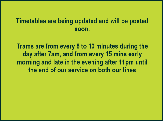 We operate a turn-up-and-go service, please be ready on the platform when the tram arrives.