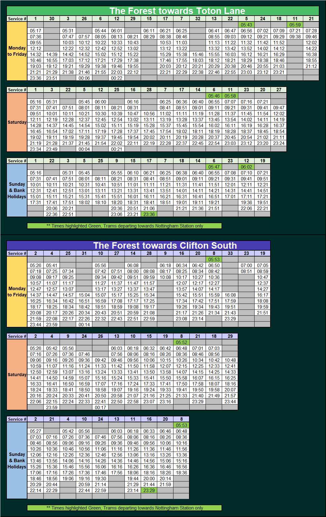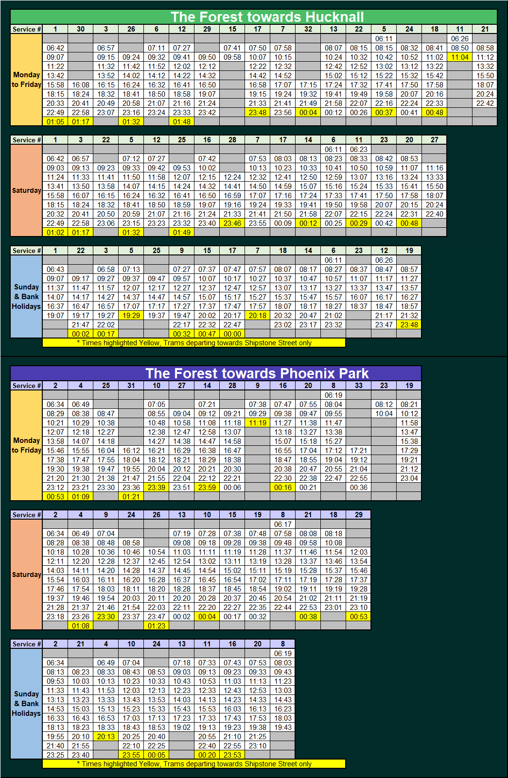 Here you will find the NCT bus service timetables to assist you in making your journey when we have ticket acceptance on them during a major disruption to our tram service.