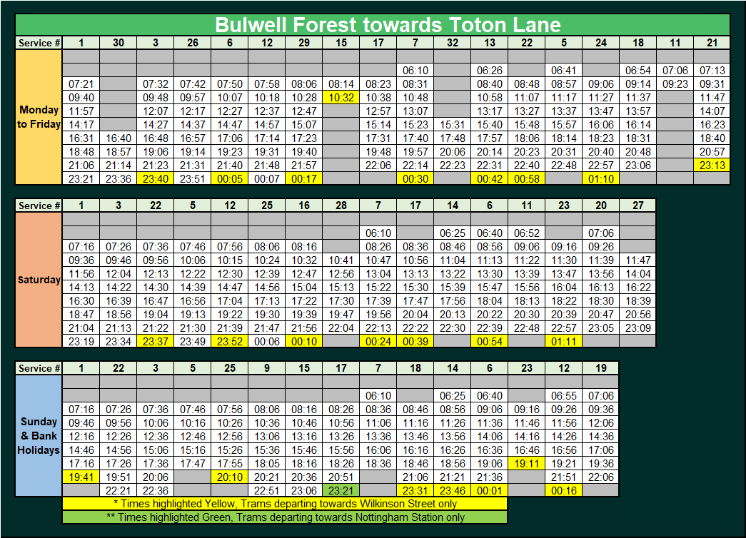 Please note, Lines 70 & 71 only service Bulwell (Morrisons) for the Moor Bridge tram stop and Squires Avenue for the Bulwell Forest tram stop Monday to Saturday 9am to 3pm, they terminate at Bulwell Bus Station at all other times.