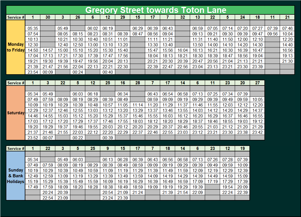 Gregory Street is not close to a major NCT bus route, the nearest bus service walking route is shown below.