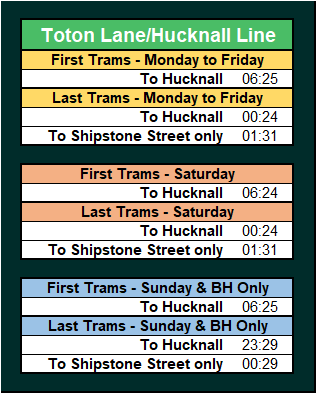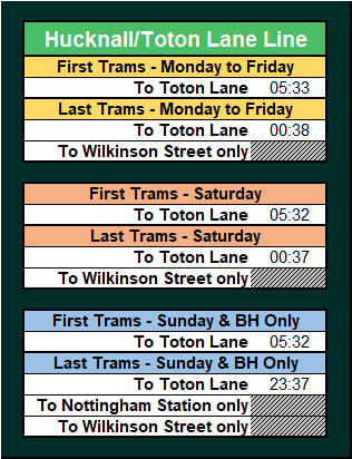 - Departure times, Journey times, First & Last trams.
