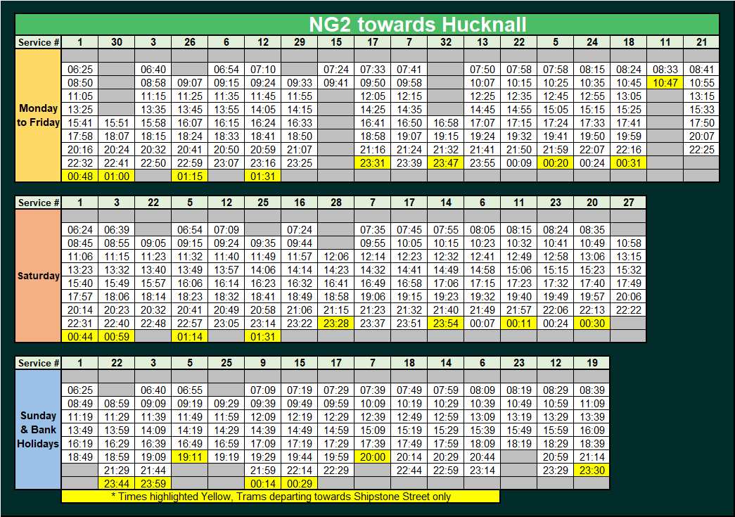 Here you will find the NCT bus service timetables to assist you in making your journey when we have ticket acceptance on them during a major disruption to our tram service.