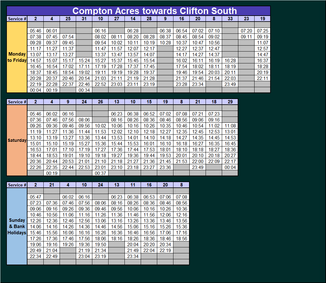 Here you will find the NCT bus service timetables to assist you in making your journey when we have ticket acceptance on them during a major disruption to our tram service.