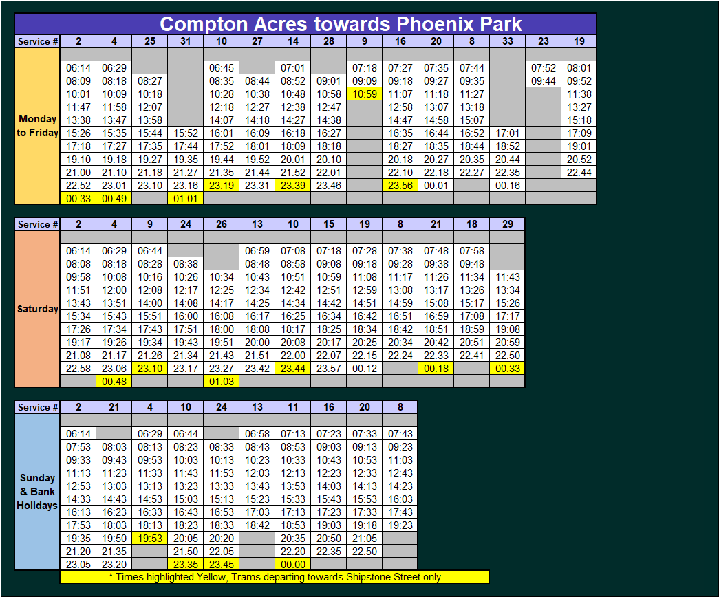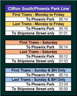 - Departure times, Journey times, First & Last trams.